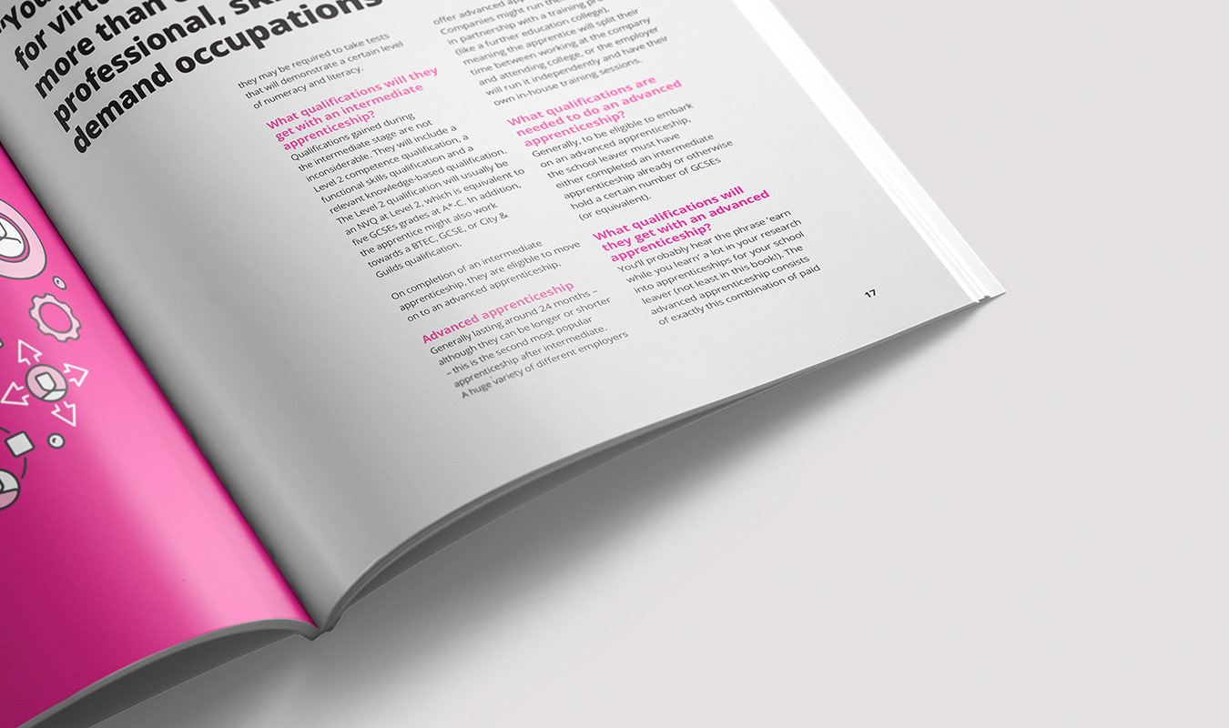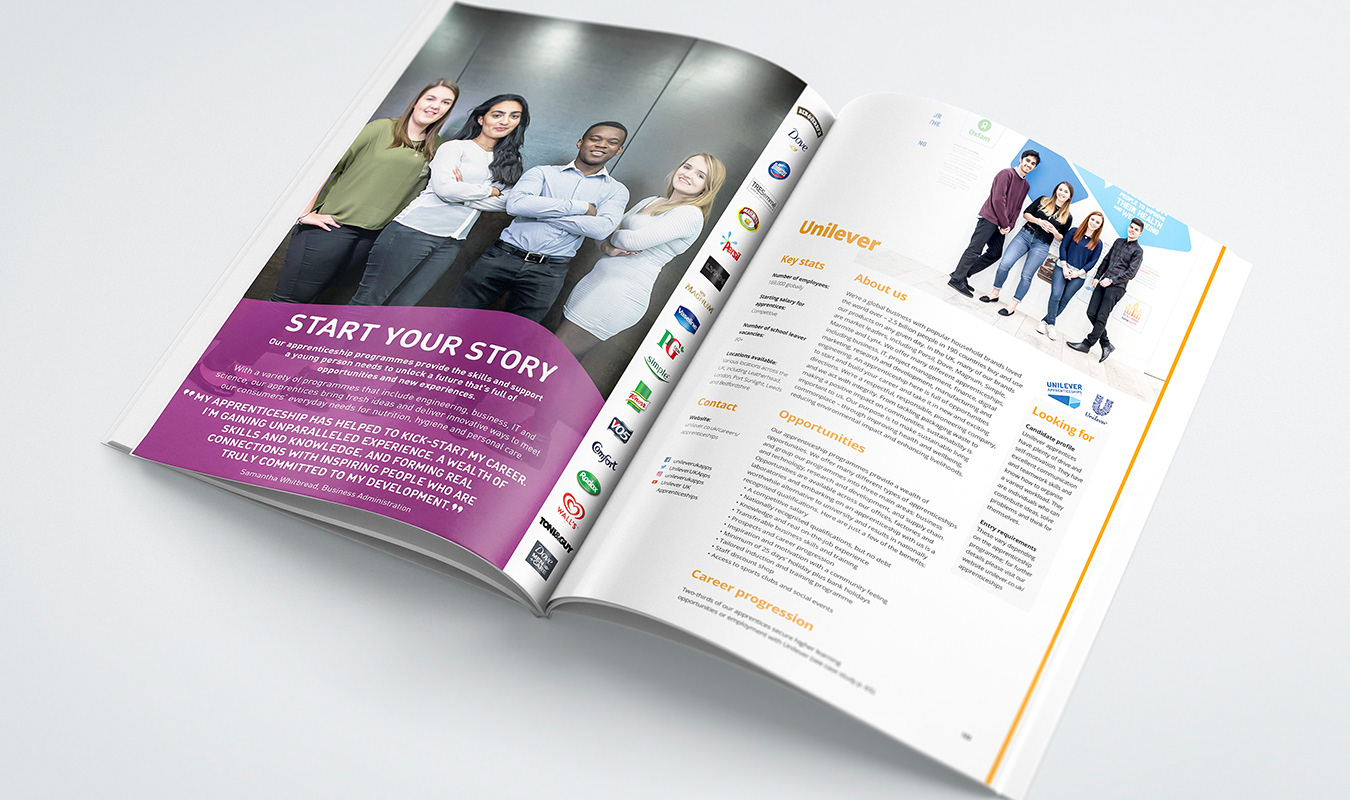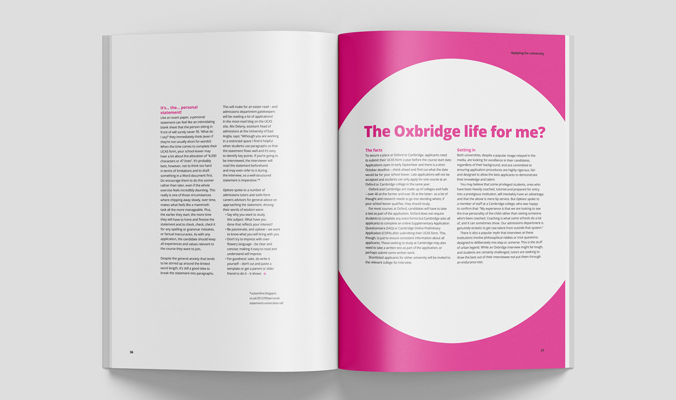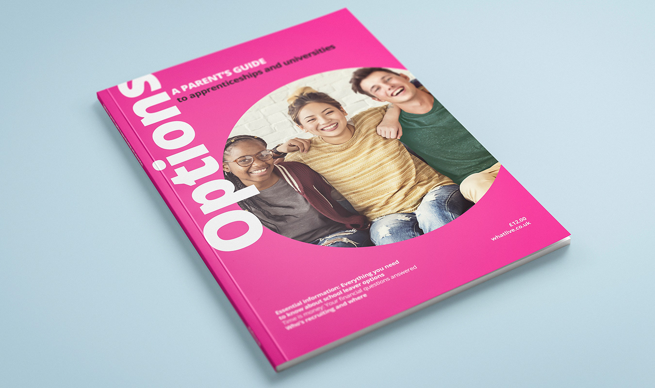A guide for parents encompassing all they need to know about various routes for their children leaving school. Featuring in-depth advice articles, and a directory of companies and unversities. I designed the magazine from the ground up.